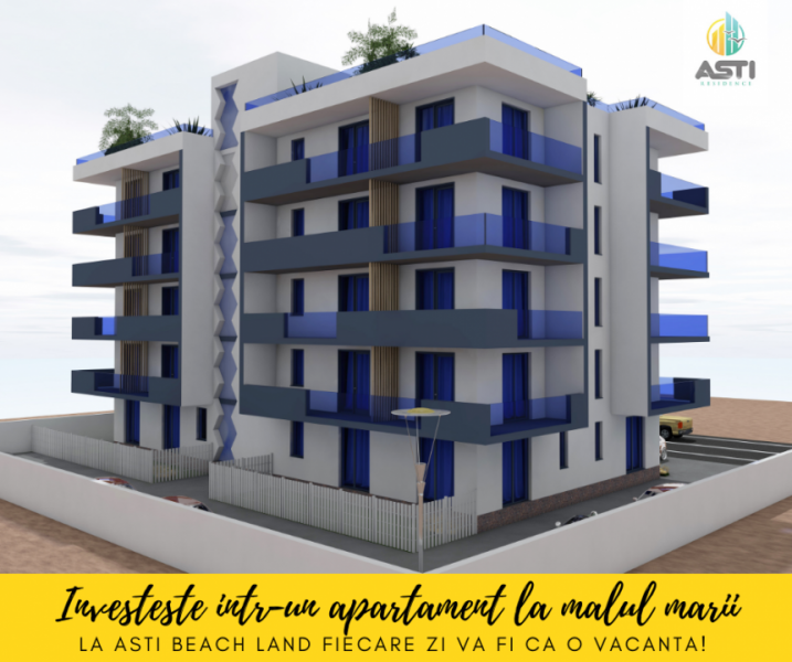Ansamblul Rezidential ASTI Beach Land este situat pe Strada B2 in Mamaia Nord, la doar 2 pasi de plaja. Este o constructie P +4 Etaje cu rezistenta de beton turnat si BCA Cladirea are un sistem de izolare si finisare de tip termosistem, format din izolatie din polistiren, plasa din fibra de sticla si tencuiala decorativa.