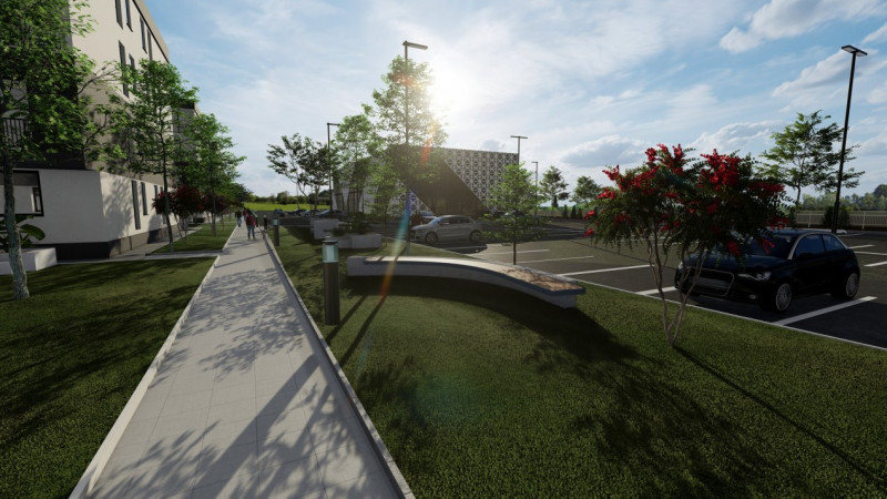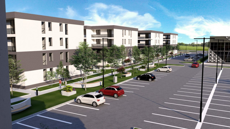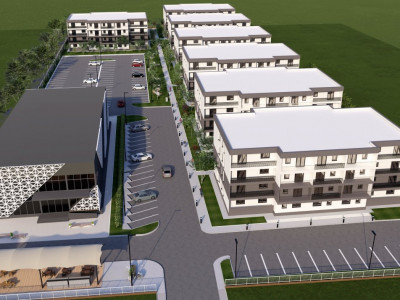O suprafață de 17.000 mp și 7 imobile, centru comercial, loc de joacă pentru copii, supermarket și parcare privată.