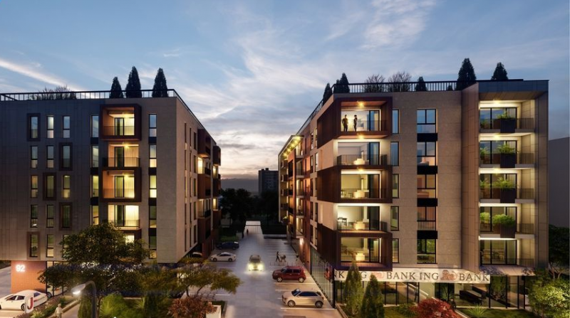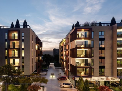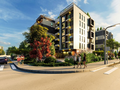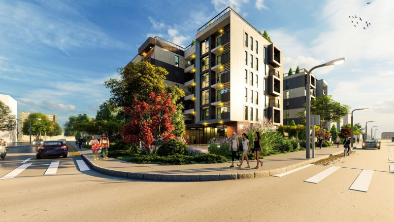 Ansamblul de locuinte beneficiaza de locuri de joaca pentru copii si spatii verzi. Toate locurile de parcare din incinta complexului de locuinte sunt organizate supraterane si sunt prevazute statii de incarcare a masinilor electrice. La intrarea in complex este instalată bariera de acces pentru automobile.