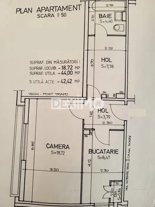 Deximo va prezinta spre vanzare o garsoniera clasica si spatioasa in suprafata de 44 mp, decomandata, situata intre Zona Dacia si Victoria, la parterul unui bloc de 4 etaje, compartimentata astfel : camera, bucatarie, 2 holuri, grup sanitar. La interior, dispune de finisaje clasice dar se poate moderniza in functie de bugetul si bunul plac ale viitorului proprietar, iar conducta de gaze naturale este trasa in locuinta. Imobilul dispune de o boxa in suprafata de 15 mp, ideala pentru depozitare, cu acces din hol.