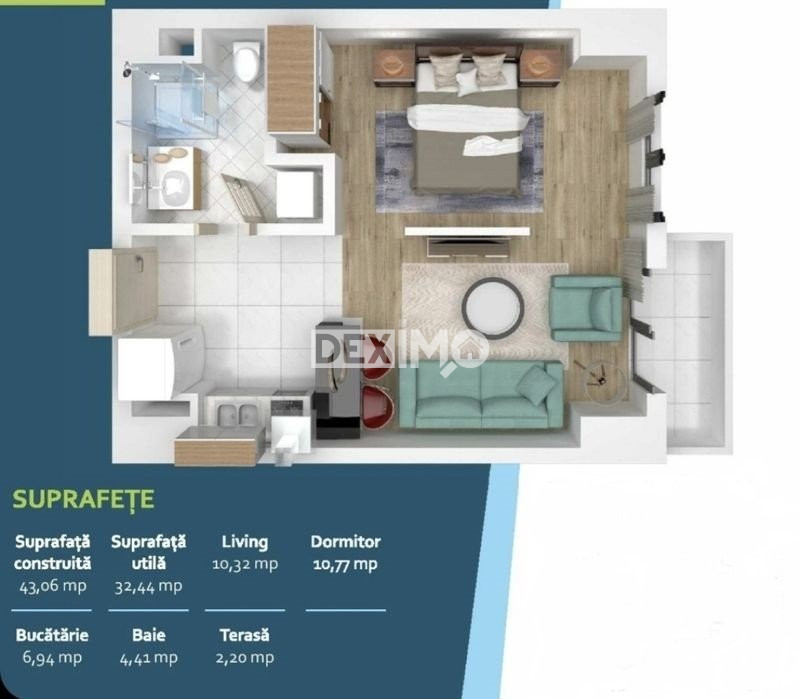 Deximo va prezinta spre vanzare un studio modern in suprafata de 34 mp, situat in Zona Inel II, la etajul 5 al unui bloc nou de 11 etaje cu lift, compartimentat astfel :camera, bucatarie inchisa, grup sanitar, balcon, dispune de finisaje moderne si se vinde "La Cheie" oferind posibilitatea viitorului proprietar de a-l mobila dupa bunul plac si buget.