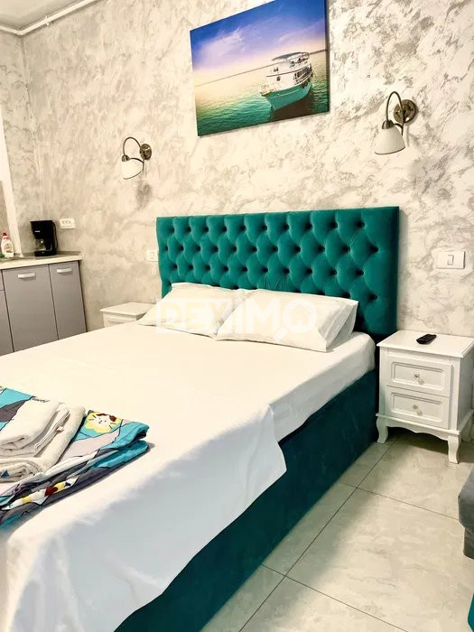 Va prezentam spre vanzare o garsoniera moderna, in suprafata de 26 mp, situata in Statiunea Mamaia, la etajul 1 al unui bloc de 9 etaje cu lift, compartimentat astfel : camera cu chicineta, hol, grup snaitar si balcon. La interior, dispune de finisaje moderne, se vinde mobilata si utilata complet dupa cum se poate vedea in fotografii, dotata cu centrala pe gaze si aparat de aer conditionat.