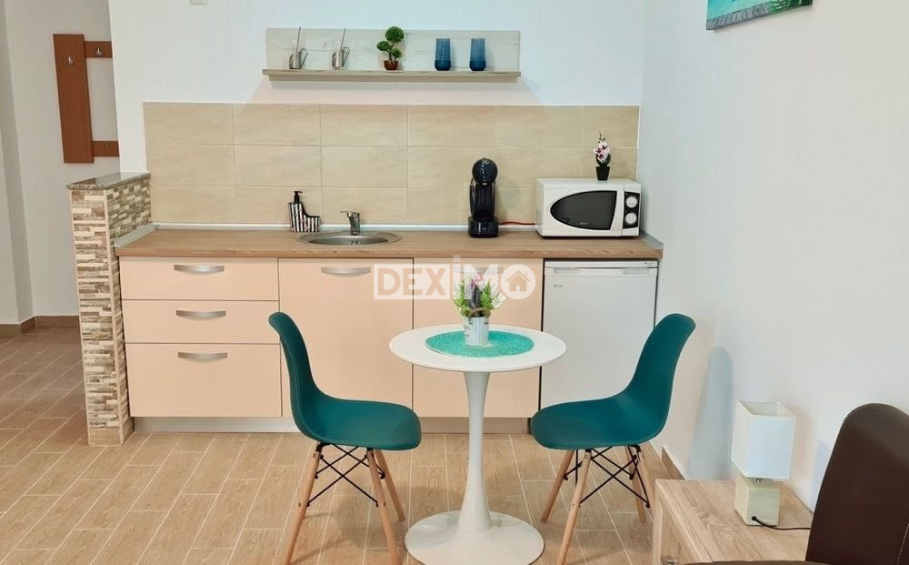Va prezentam spre vanzare un studio modern in suprafata de 31 mp , situat in Zona Mamaia Nord, la etajul 2 al unui bloc de 7 etaje cu lift, compartimentat astfel : camera, hol, bucatarie open space, grup sanitar, balcon, dispune de finisaje moderne si se vinde mobilat si utilat complet dupa cum se poate vedea in fotografii, incalzirea este centralizata.