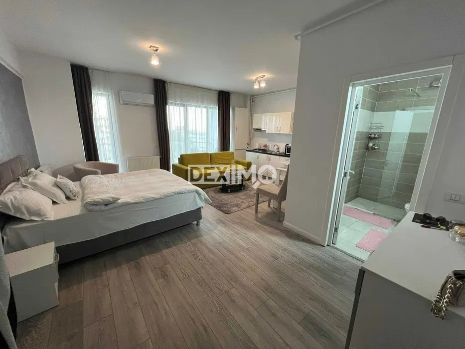 Va propunem spre vanzare un studio modern in suprafata de 40 mp, situat in Zona Nord, la etajul 5 al unui bloc de 9 etaje cu lift, compartimentat astfel : camera cu bucatarie open space, grup sanitar, balcon. La interior, dispune de finisaje moderne si se vinde mobilat si utilat complet dupa cum se poate vedea in fotografii, dotat cu centrala pe gaze si aparat de aer conditionat.