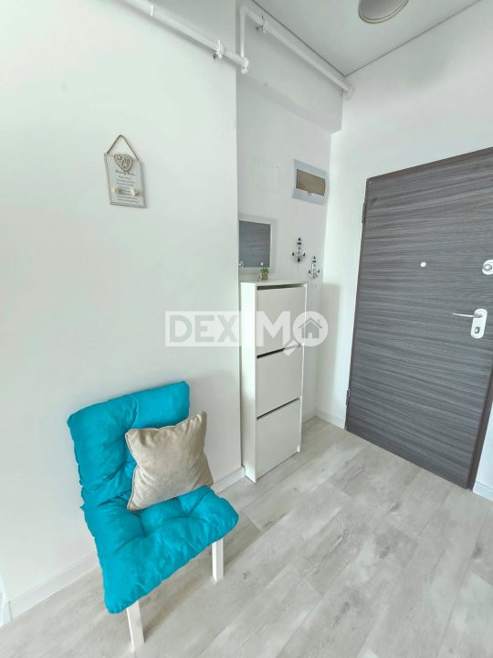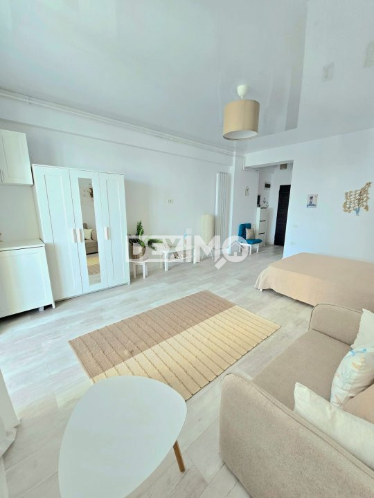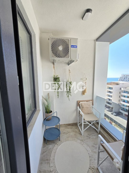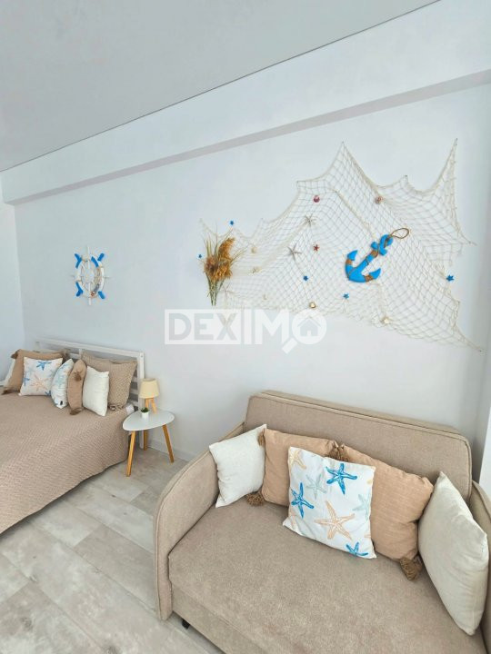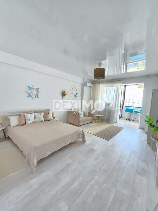 Va prezentam spre vanzare un apartament modern in suprafata de 38 mp, situat in Mamia Nord, Complex Stefan Building, la etajul 8 al unui bloc de 12 etaje cu 2 lifturi, compartimentat astfel : camera impartita in zona de zi si zona de dormit, bucatarie open space, grup sanitar si balcon. Proprietatea nu a fost locuita, totul este nou, dispune de finisaje moderne, se vinde mobilata si utilata complet dupa cum se poate vedea in fotografii, dotata cu centrala pe gaze si aparat de aer conditionat.