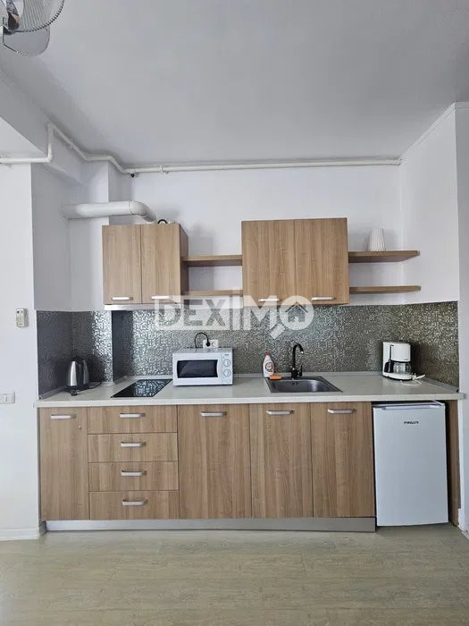 Va prezentam spre vanzare o garsoniera moderna in suprafata de 33 mp, situat in Mamaia Nord, la etajul 3 al unui bloc de 4 etaje cu lift, compartimentat astfel : camera cu bucatarie open space, grup sanitar si balcon. La interior, dispune de finisaje moderne, se vinde mobilat si utilat complet dupa cum se poate vedea in fotografii, dotat cu centrala pe gaze si aparat de aer conditionat.