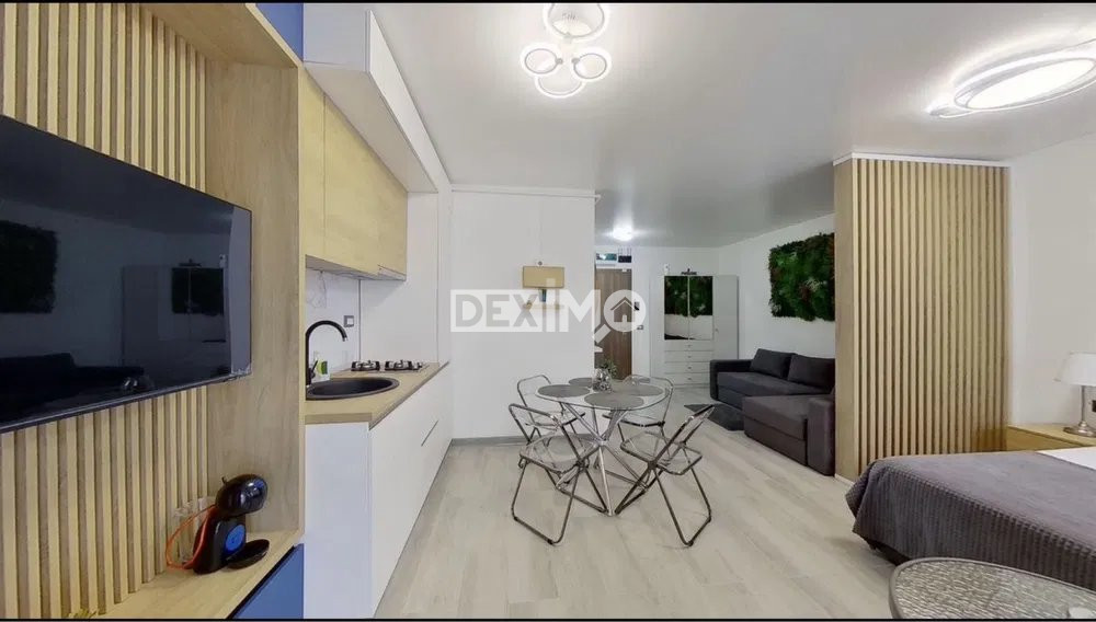 Deximo va prezinta spre vanzare un studio modern si spatios in suprafata de 40 mp, situat in Mamaia Nord, la etajul 4 al unui bloc de 7 etaje cu 4 lifturi, compartimentat astfel : camera open space cu bucatarie impartita in zona de living si zona de dormit, hol, grup sanitar si balcon. La interior, dispune de finisaje premium, se vinde mobilat si utilat complet dupa cum se poate vedea in fotografii, dotat cu centrala pe gaze si aparat de aer conditionat.