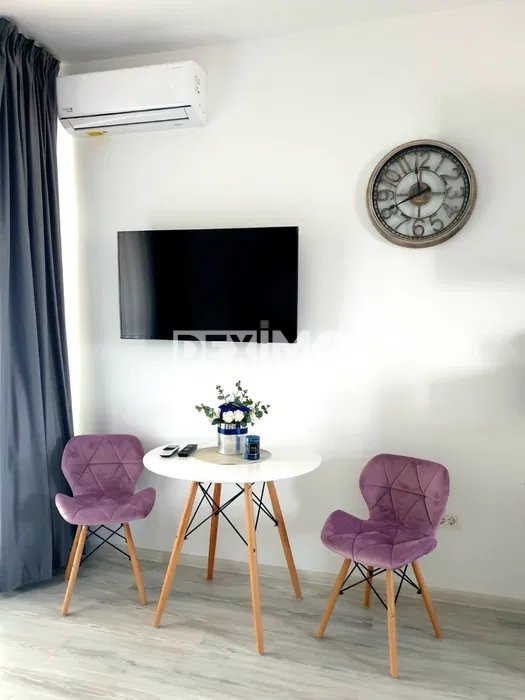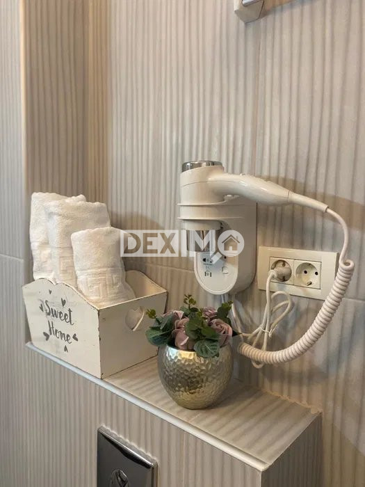 Va prezentam spre vanzare o garsoniera moderna in suprafata de 32 mp, situata in Mamaia Nord, la parterul unui bloc de 4 etaje, compartimentata astfel : camera cu bucatarie open space, amenajata cu zona de zi si zona de somn, hol, grup sanitar si balcon. La inteior, dispune de finisaje moderne, se vinde mobilat si utilat complet dupa cum se poate vedea in fotografii, dotat cu centrala pe gaze si aparat de aer conditionat. Locuinta beneficiaza de un loc de parcare privat exterior ce se poate achizitiona la pretul de 10.000 Euro.