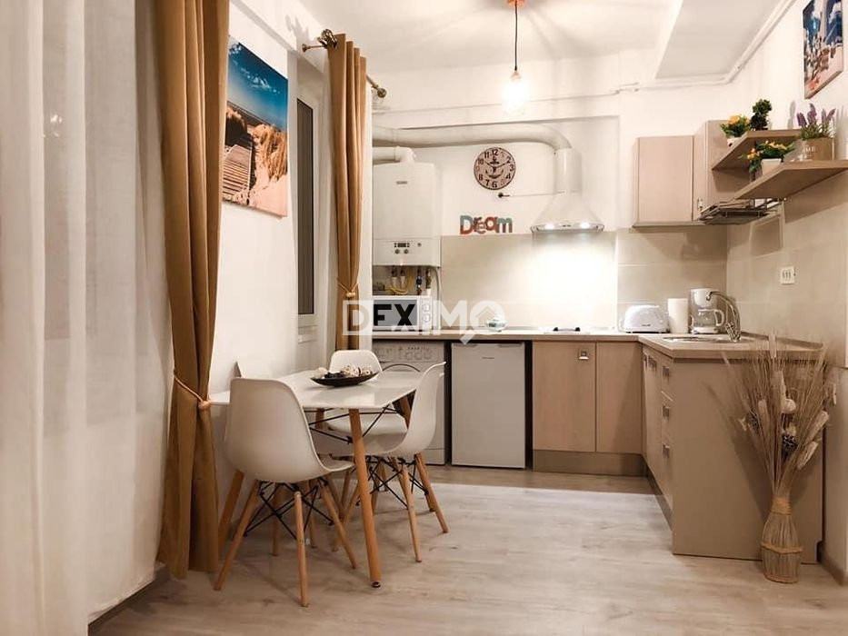 Va prezentam spre vanzare un studio modern in suprafata de 30 mp, situat in Zona Nord, la etajul 2 al unui bloc de 4 etaje, compartimentat astfel : camera, bucatarie open space, hol, grup sanitar, dispune de finisaje moderne si se vinde mobilat si utilat complet dupa cum se poate vedea in fotografii, dotat cu centrala pe gaze.