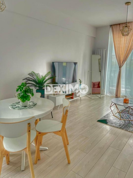 Va prezentam spre inchiriere un apartament modern in suprafata de 55 mp, de 2 camere, situat in Mamaia Nord, la etajul 3al unui bloc de 5 etaje cu lift, compartimentat astfel : living cu bucatarie open space, dormitor, grup snaitar si balcon. La interior, dispune de finisaje premium, se inchiriaza mobilat si utilat complet dupa cum se poate vedea in fotografii, dotat cu centrala pe gaze si aparat de aer conditionat si se inchiriaza pe termen lung la pretul de 800 Euro/Luna plus 1 Luna Garantie. Proprietatea se poate vizita doar in baza Acordului De Vizionare!
