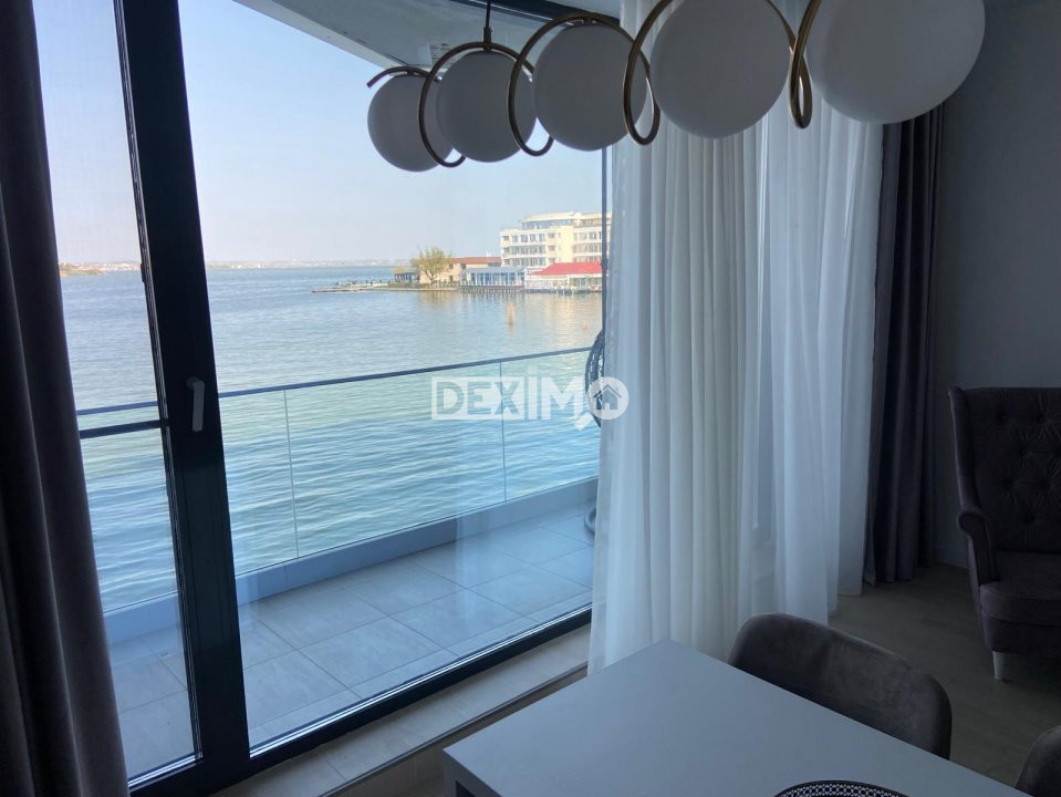 Terasa privată: Bucurați-vă de momente de relaxare pe terasa spațioasă cu vedere frontală la lacul Siutghiol, un loc ideal pentru a petrece timp în aer liber.