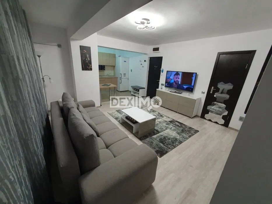 Deximo va prezinta spre inchiriere un apartament modern in suprafata de 56 mp, de 2 camere, situat in Zona Compozitori, la etajul 6 al unui bloc de 9 etaje cu lift, compartimentat astfel : living, bucatarie semi deschisa, dormitor, grup sanitar si balcon. La interior, dispune de finisaje moderne, se inchiriaza mobilat si utilat complet dupa cum se poate vedea in fotografii, iar incalzirea se face prin centrala pe gaze a blocului. Locuinta beneficiaza de loc de parcare privat.
