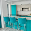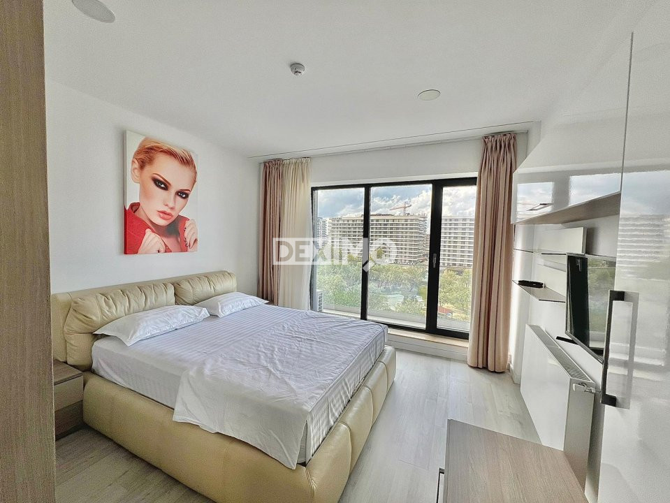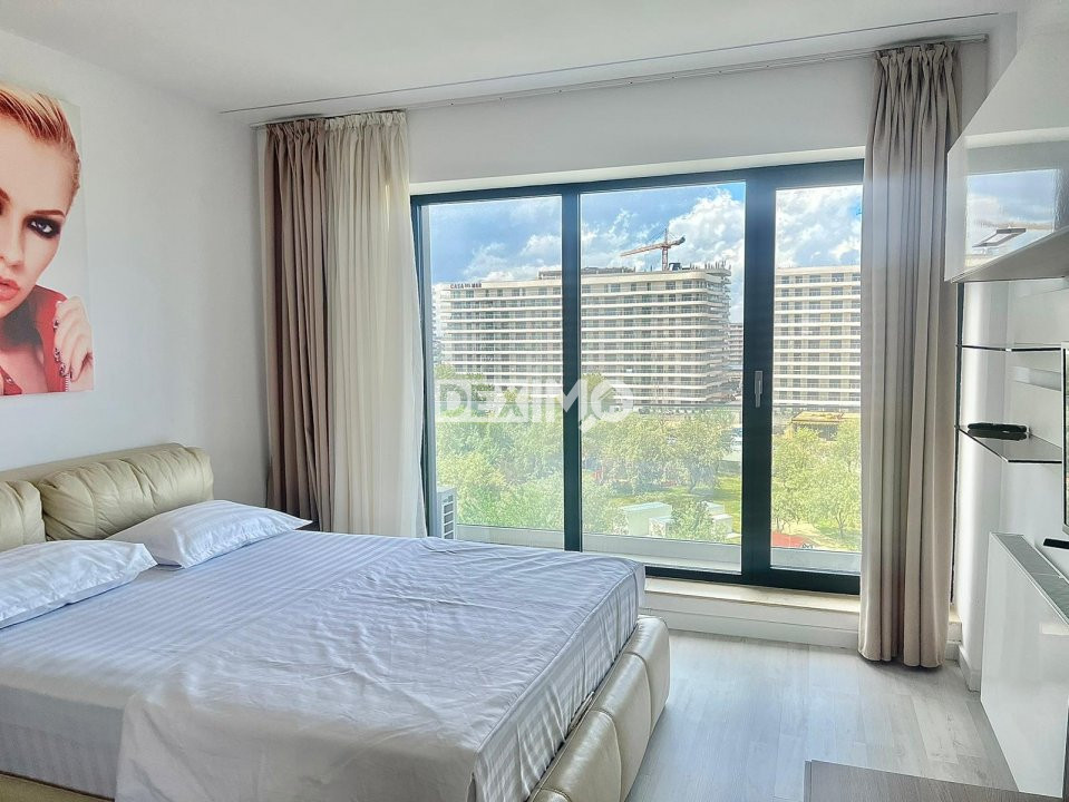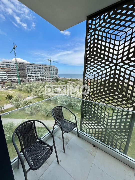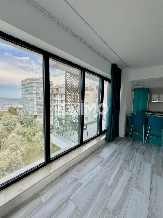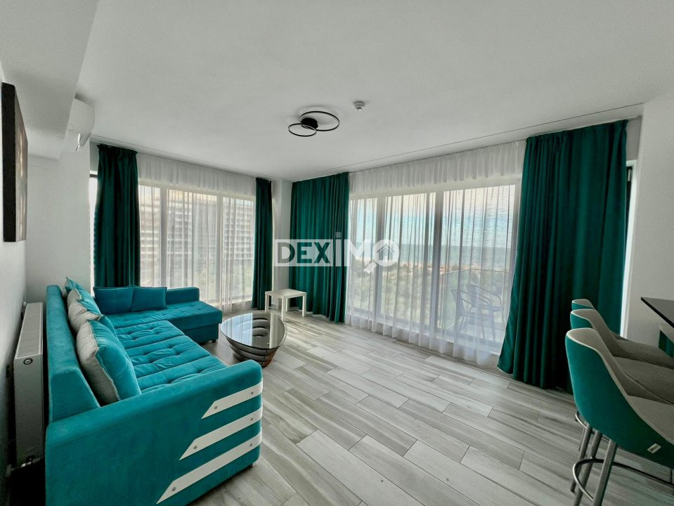 Va prezentam spre inchiriere un apartament modern in suprafata de 50 mp, de 2 camere, situat in Mamaia Nord, pe partea cu MAREA, la etajul 6 al unui bloc de 8 etaje cu lift, compartimentat astfel : living cu bucatarie open space, dormitor, grup snaitar si balcon. La interior, dispune de finisaje premium, se inchiriaza mobilat si utilat complet dupa cum se poate vedea in fotografii, dotat cu centrala pe gaze si aparat de aer conditionat.