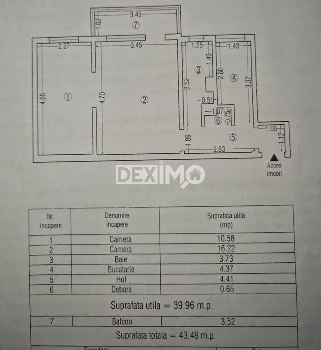 Deximo va prezinta spre vanzare un apartament clasic in suprafata de 43 mp, de 2 camere semidecomandate, situat in Zona Inel II, la etajul 1 al unui bloc de 4 etaje, compartimentat astfel : living, hol, bucatarie,dormitor, grup sanitar si balcon. La interior, dispune de finisaje clasice dar se paote moderniza dupa bunul plac si buget, dotat cu centrala pe gaze. Imobilul se afla aproape de piata, magazine, supermarketuri, scoli si mijloace de transport in comun.