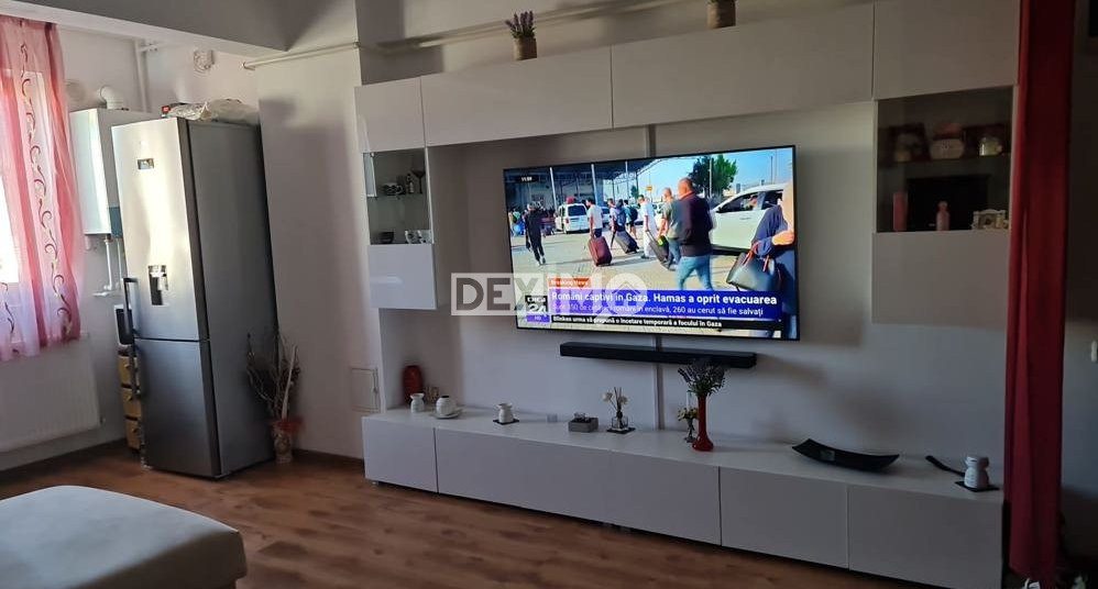 Deximo va prezinta spre vanzare un apartament modern si spatios in suprafata de 73 mp, de 2 camere semidecomandate, situat in Zona Compozitori, la etajul 1 al unui bloc de 3 etaje, compartimentat astfel : living cu bucatarie open space, hol, dormitor, grup sanitar, balcon. La interior, dispune de finisaje moderne, se vinde mobilat si utilat complet dupa cum se poate vedea in fotografii, dotat cu centrala pe gaze si aparat de aer conditionat. Locuinta beneficiaza de 2 locuri de parcare private exterioare.