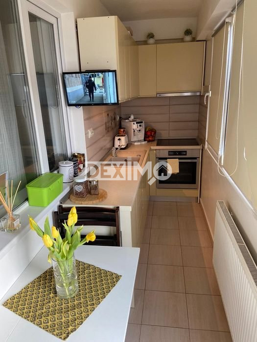 Deximo va prezinta spre vanzare un apartament modern in suprafata de 57 mp , de 2 camere decomandate, situat in Zona Kamsas, la etajul 7 al unui bloc de 9 etaje cu lift, compartimentat astfel : living, hol, bucatarie, dormitor, grup sanitar, dispune de finisaje moderne si se vinde mobilat si utilat complet dupa cum se poate vedea in fotografii, incalzirea se face prin centrala pe gaze a blocului, iar in locuinta se afla un semineu care functioneaza pe Bioetanol.