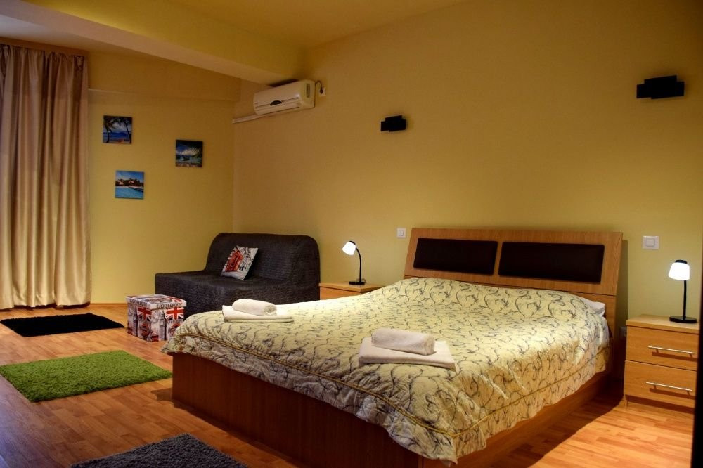 - dormitor cu pat matrimonial si canapea extensibila 2 persoane, dulap 6 usi, TV, AC