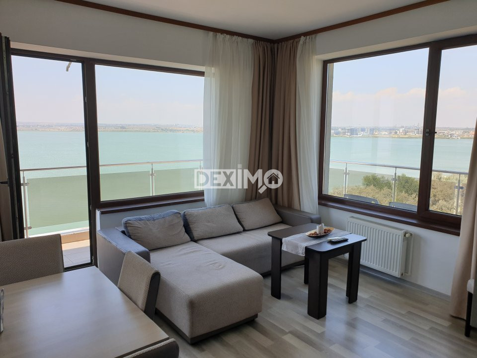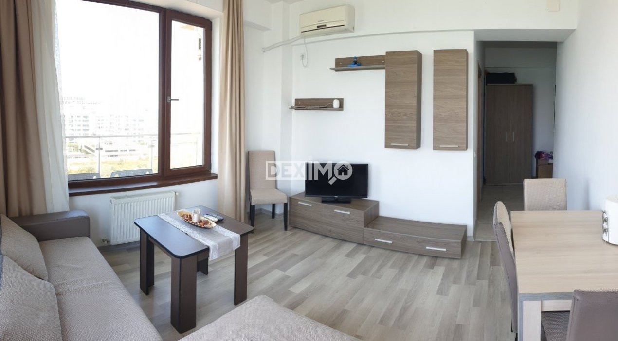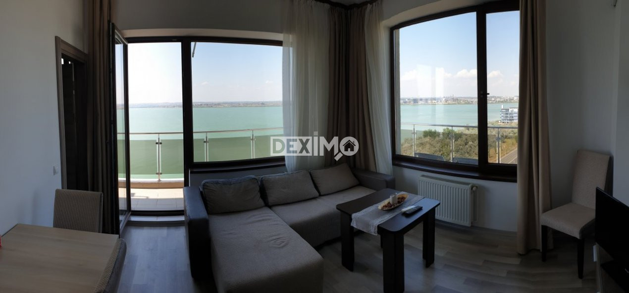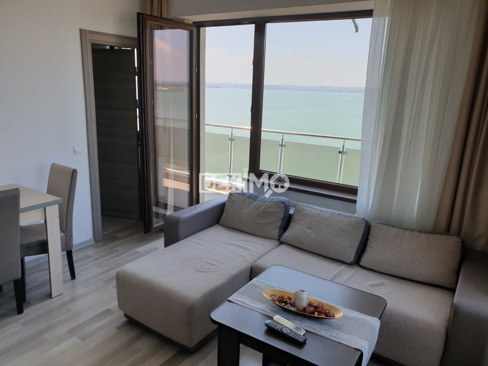 Va prezentam spre vanzare un apartament modern in suprafata de 60 mp, de 2 camere decomandate, situat in Mamaia SUMMERLAND, Zona Nuba, la etajul 8 al unui bloc de 9 etaje cu lift, compartimentat astfel : living, hol, bucatarie, dormitor, grup sanitar, terasa spatioasa cu vedere catre mare si lac. La interior, dispune de finisaje moderne si se vinde mobilat si utilat complet dupa cum se poate vedea in fotografii, dotat cu centrala pe gaze.