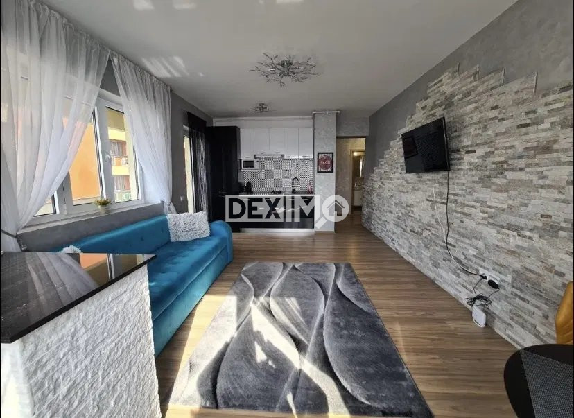 Va prezentam spre vanzare un apartament modern in suprafata de 58 mp, de 2 camere decomandate, situat in Statiunea Mamaia, la etajul 2 al unui bloc de 9 etaje cu lift, compartimentat astfel : living cu bucatarie open space, dormitor, grup sanitar, balcon cu vedere superba catre lac. La interior, dispune de finisaje moderne si se vinde mobilat si utilat complet dupa cum se poate vedea in fotografii, dotat cu centrala pe gaze si aparatd e aer conditionat. In pretul imobilului este inclus si un loc de parcare subteran cu acces cu bariera.
