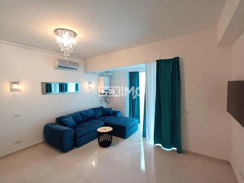 Va prezentam spre vanzare un apartament modern in suprafata de 49 mp, de 2 camere decomandate, situat in Zona Central, la etajul 4 al unui bloc de 6 etaje cu lift, compartimentat astfel : living cu bucatarie open space, dormitor, grup sanitar, balcon cu vedere spre lac. La interiror, dispune de finisaje premium si se vinde mobilat si utilat complet dupa cum se poate vedea in fotografii, dotat cu centrala pe gaze si aparat de aer conditionat.