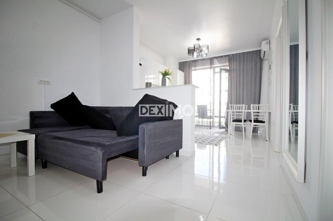 Va prezentam spre vanzare un apartament modern, luminos cu spatiu vitrat generos, in suprafata de 60 mp, de 2 camere, situat in Mamaia Nord, Zona Hotel Opera, la etajul 5 al unui bloc nou de 6 etaje cu 2 lifturi, compartimentat astfel : living cu bucatarie open space, hol, dormitor, grup sanitar, balcon cu vedere laterala la mare si lac. La interior, dispune de finisaje premium, se vinde mobilat si utilat complet dupa cum se poate vedea in fotografii, dotat cu centrala pe gaze si aparat de aer conditionat. Proprietatea beneficiaza de un loc de parcare privat exterior, ce se poate achizitiona la pretul de 10 000 Euro.