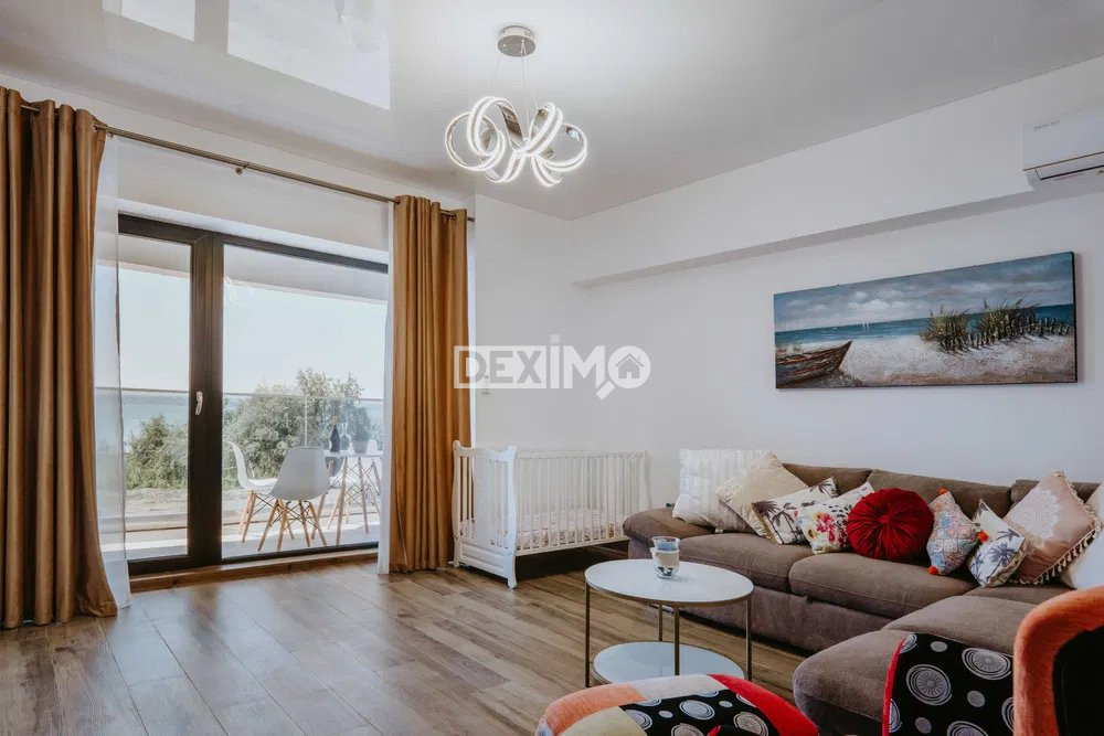 Va prezentam spre vanzare un apartament modern si spatios in suprafata de 80 mp cu 2 terase , de 2 camere decomandate, situat in Statiunea Mamaia, la etajul 1 al unui bloc de 9 etaje cu lift, compartimentat astfel : living, hol, bucatarie, dormitor, grup sanitar si 2 terase din care una cu vedere frontaal spre lac. La interior, dispune de finisaje moderne, se vinde mobilat si utilat complet dupa cum se poate vedea in fotografii, dotat cu centrala pe gaze si aparat de aer conditionat.