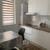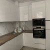 Bucătărie separată (8 mp): mobilată și utilată complet, cu hotă, plită electrică, cuptor și cuptor cu microunde încorporate, mașină de spălat vase, frigider, chiuvetă Franke, aparat de cafea, masă cu 4 scaune.
