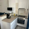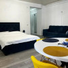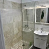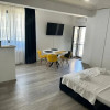 Compartimentare open-space, cu bucătărie ușor delimitată și baie modernă cu cabină de duș construită