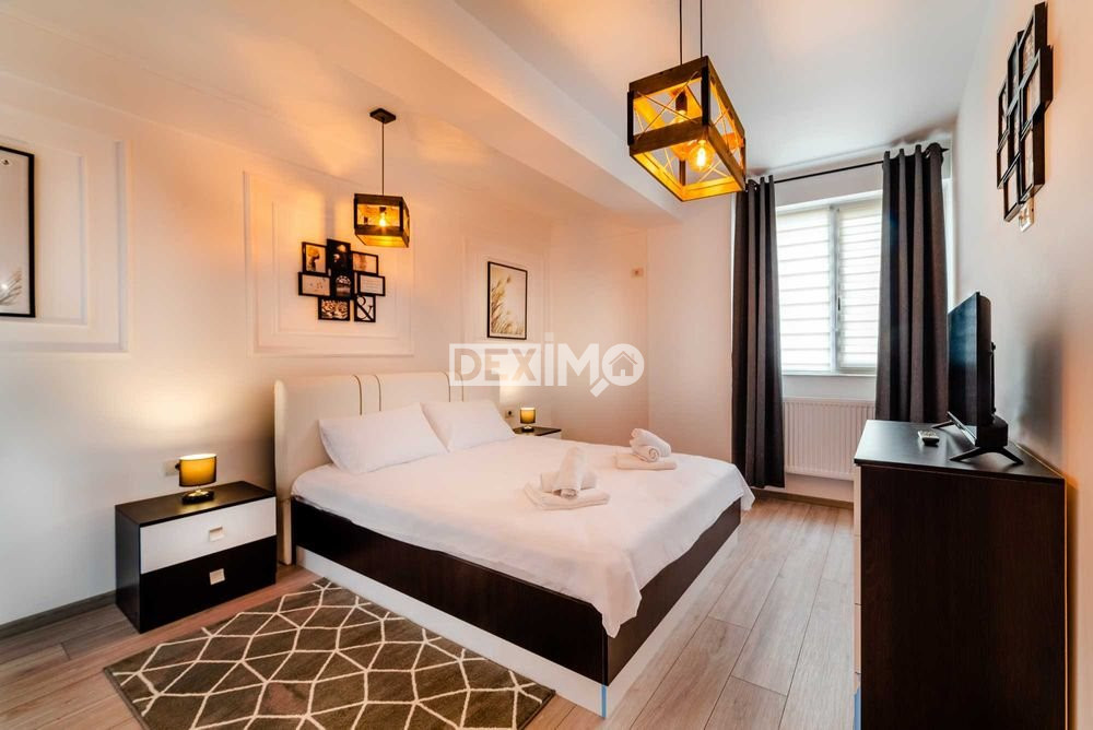 Va prezentam spre vanzare un apartament modern in suprafata de 56 mp , de 2 camere decomandate, situat in Zona Nord, la etajul 5 al unui bloc de 6 etaje cu lift, compartimentat astfel : living, hol, bucatarie open space, dormitor, 2 grupuri sanitare, balcon, dispune de finisaje moderne si se vinde mobilat si utilat complet dupa cum se poate vedea in fotografii, dotat cu centrala pe gaze.