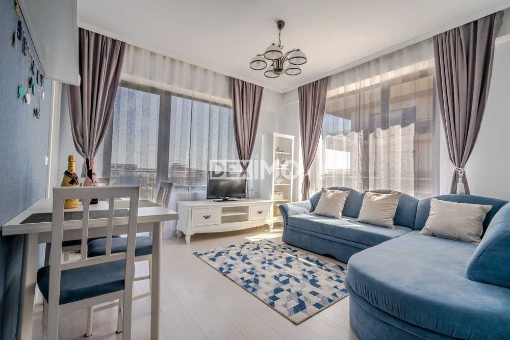 Va prezentam spre vanzare un apartament modern in suprafata de 59 mp , de 2 camere decomandate, situat in Zona Mamaia Nord, la etajul 7 al unui bloc de 8 etaje cu lift, compartimentat astfel : living, hol, bucatarie, dormitor, grup sanitar, terasa cu iesire din dormitor si living. La interior este amenajat in 2021 de catre o echipa de designeri, dispune de finisaje moderne si se vinde mobilat si utilat complet dupa cum se poate vedea in fotografii, dotat cu centrala pe gaze.