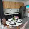 Va prezentam spre vanzare un apartament modern in suprafata de 46 mp , de 2 camere decomandate, situat in Zona Mamaia Nord, la etajul 6 al unui bloc de 7 etaje cu lift, compartimentat astfel : living, hol, bucatarie open space, dormitor, grup sanitar, terasa. La interior, dispune de finisaje moderne si se vinde mobilat si utilat complet dupa cum se poate vedea in fotografii, dotat cu centrala pe gaze.