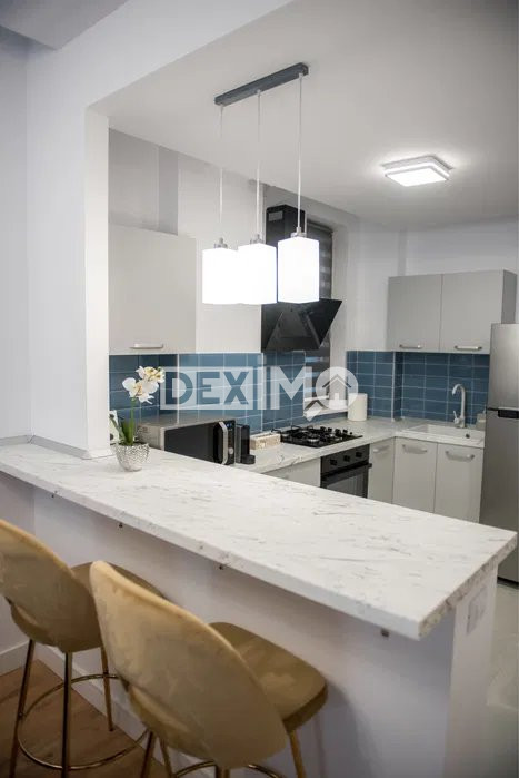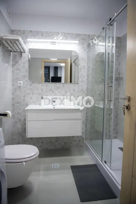 Va prezentam spre vanzare un apartament modern in suprafata de 53 mp, de 2 camere decomandate, situat in Zona Mamaia Nord, la etajul 3 al unui bloc de 6 etaje cu lift, compartimentat astfel : living, hol, bucatarie open space, dormitor, grup sanitar, balcon. La interior, dispune de finisaje moderne si se vinde mobilat si utilat complet dupa cum se poate vedea in fotografii, dotat cu centrala pe gaze, incalzire in pardoseala si aparat de aer conditionat.