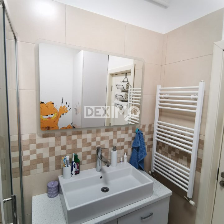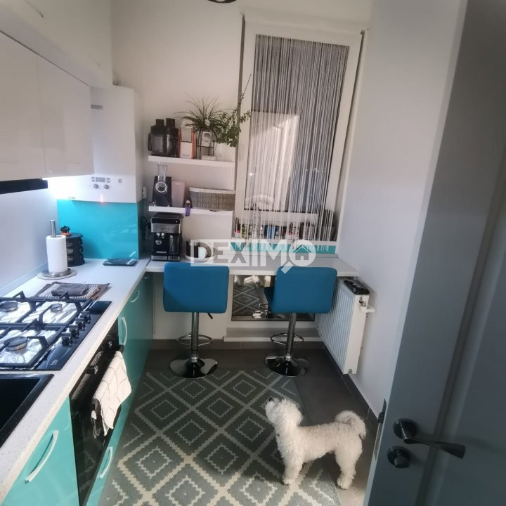 Deximo va prezinta spre vanzare un apartament modern in suprafata de 50 mp, de 2 camere decomandate, situat in Zona Nord, la ultimul etaj al unui bloc de 5 etaje cu lift, compartimentat astfel : living, hol, bucatarie separata, dormitor, grup sanitar, balcon. La interior, dispune de finisaje moderne si se vinde mobilat si utilat complet dupa cum se poate vedea in fotografii, dotat cu centrala pe gaze iar in pretul apartamentului este inclus un loc de parcare privat.