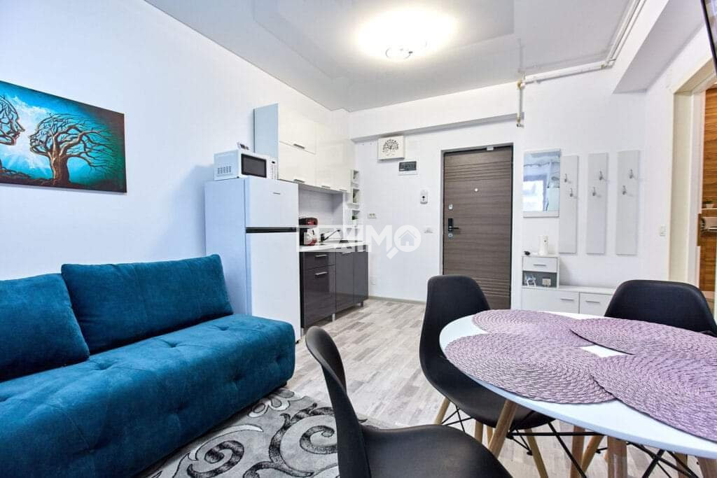 Va prezentam spre achizitie un apartament modern in suprafata de 35.5 mp, situat in Mamaia Nord, prima linie la Promenada, la etajul 1 al unui bloc nou 2021, de 8 etaje cu lift, compartimentat astfel : living cu bucatarie open space, dormitor,grup sanitar, balcon generos cu vedere catre mare, amenajat cu loc de relaxare. La interior, dispune de finisaje moderne si se vinde mobilat si utilat complet dupa cum se poate vedea in fotografii, dotat cu centrala pe gaze si aparat de aer conditionat.