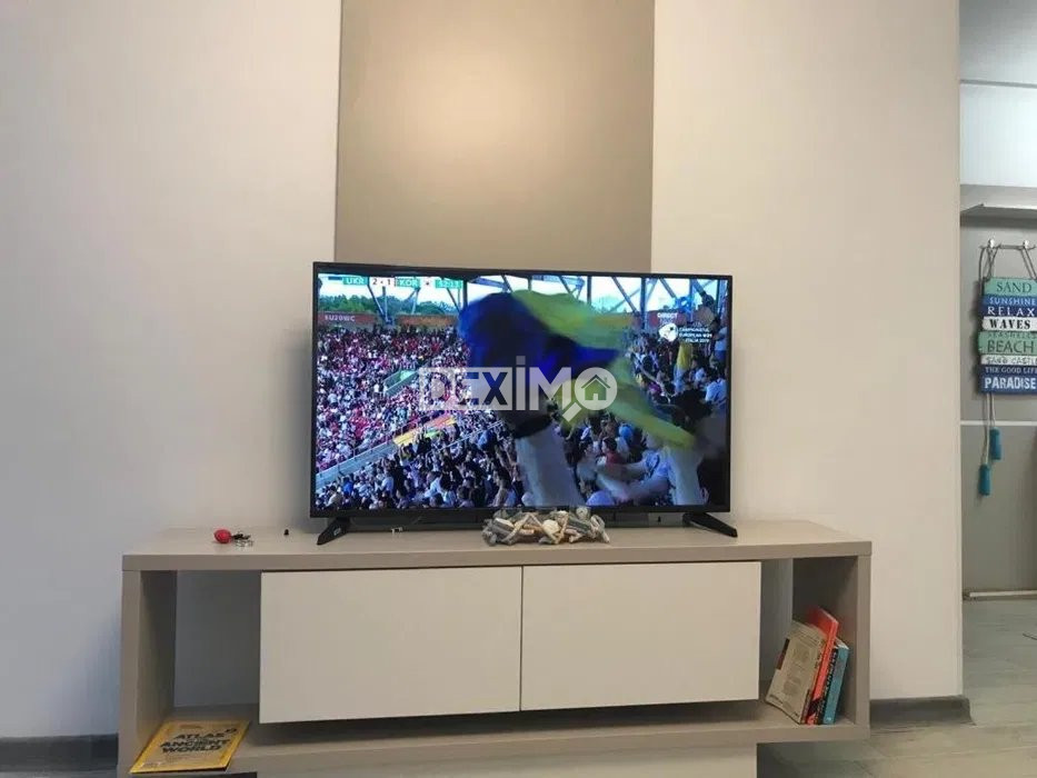 Va prezentam spre vanzare un apartament modern si spatios in suprafata de 65 mp, de 2 camere decomandate, situat in Mamaia Nord, la etajul 4 al unui bloc de 8 etaje cu lift, compartimentat astfel : living, hol, bucatarie separata, dormitor, grup sanitar, balcon. La interior, dispune de finisaje moderne si se vinde mobilat si utilat complet dupa cum se poate vedea in fotografii, dotat cu centrala pe gaze si aparat de aer conditionat.