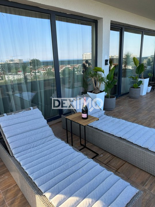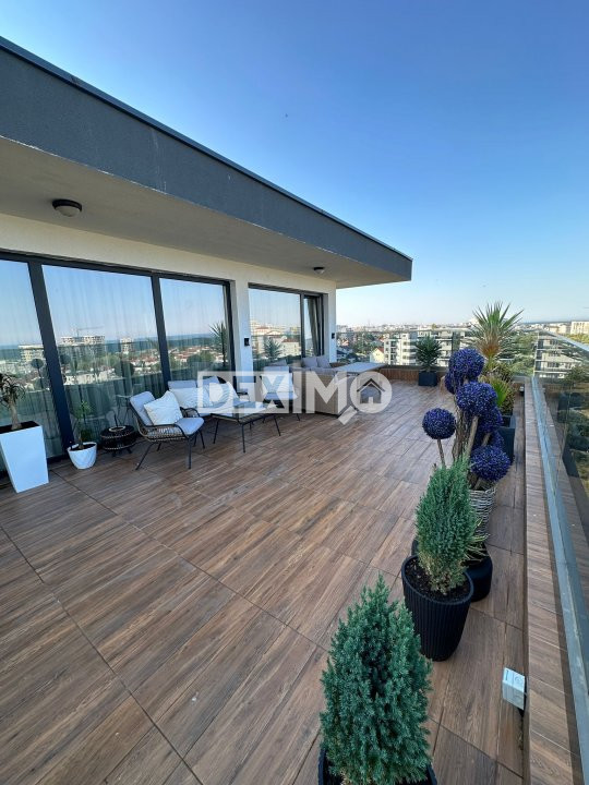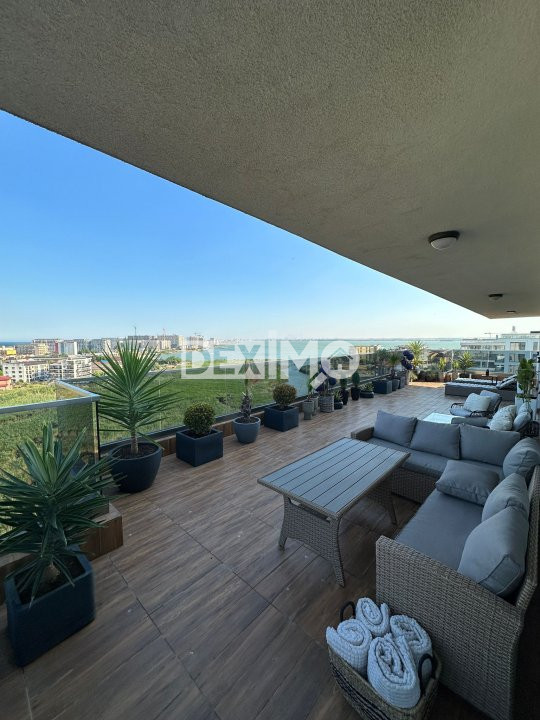 Va prezentam spre vanzare o proprietate deosebita, spatioasa, in suprafata de 154 mp , de 2 camere decomandate, situat in Mamaia Nord, Zona Hanul Cu Peste, la ultimul etaj al unui bloc de 6 etaje cu lift, compartimentat astfel : living cu bucatarie open space, dormitor, grup sanitar, 2 balcoane si o terasa spatioasa cu vedere spre mare si Lacul Siuthghiol. Interiorul proprietati a fost amenajat de designe, dispune de finisaje premium ( tavane Barisol, marmura etc), se vinde mobilat si utilat LUX, dupa cum se poate vedea in fotografii, dotat cu incalzire in pardoseala si aparat de aer conditionat. Accesul in apartament se face direct din lift in living, iar in pret este inclus un loc de parcare subteran.