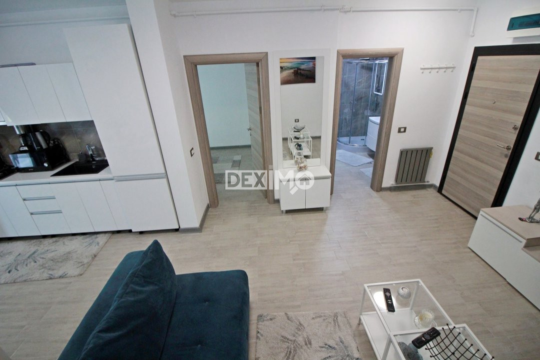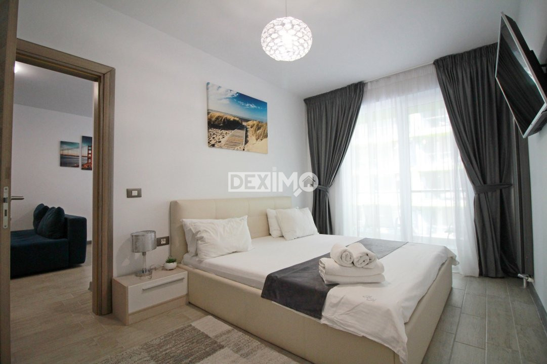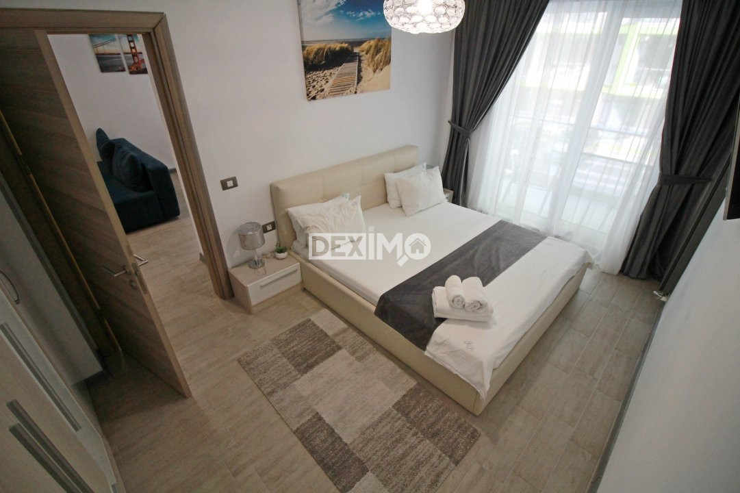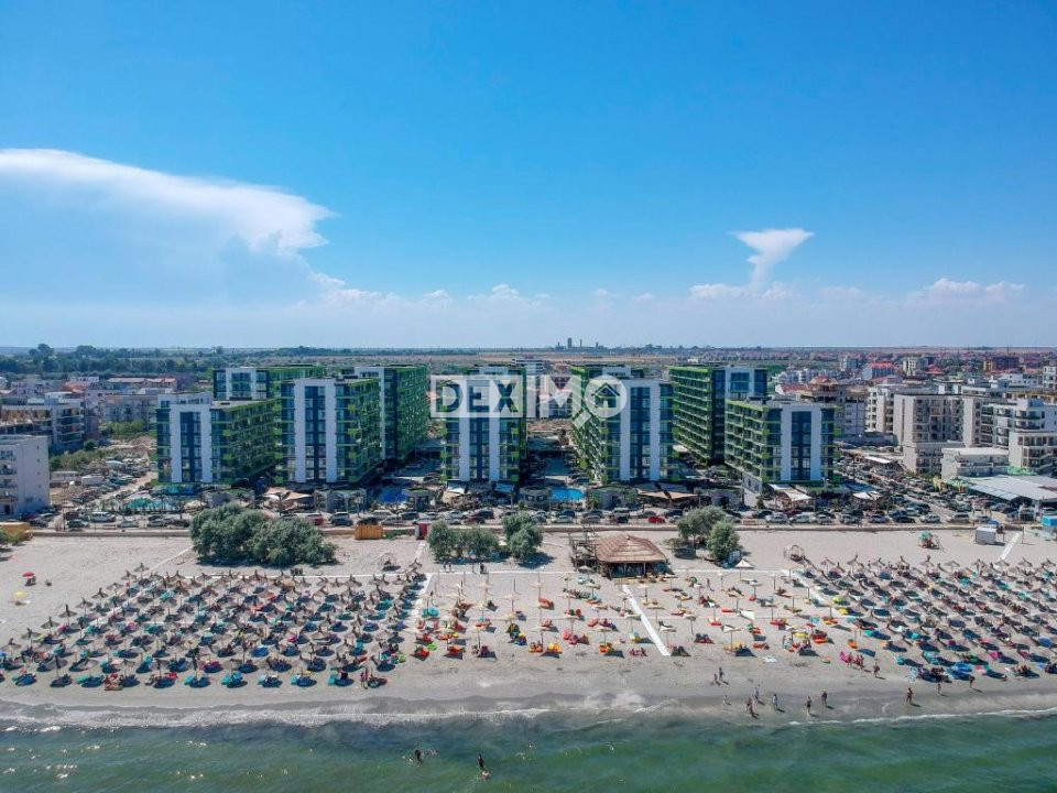 Va prezentam spre vanzare un apartament modern in suprafata de 53 mp, de 2 camere decomandate, situat in Mamaia Nord, Alezzi Resort, la etajul 1 al unui bloc de 8 etaje cu lift, compartimentat astfel : living cu bucatarie open space, dormitor, grup sanitar, terasa cu vedere laterala la mare. La interior, dispune de finisaje moderne, se vinde mobilat si utilat complet dupa cum se poate vedea in fotografii, dotat cu centrala pe gaze si aparat de aer conditionat. Locuinta se afla intr-un complex rezidential ce ofera multiple facilitati precum: doua piscine exterioare incalzite, o piscina speciala pentru copii, o piscina interioara, loc de joaca, sala de fitness, sauna, restaurante cu specific divers si tot ceea ce este nevoie pentru o vacanta perfecta la mare.