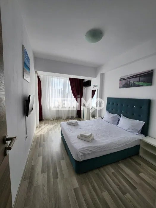 Va prezentam spre vanzare un apartament modern in suprafata de 50 mp , de 2 camere semidecomandate, situat in Mamaia Nord, la etajul 5 al unui bloc de 8 etaje cu lift, compartimentat astfel : living cu bucatarie open space, dormitor, grup sanitar, balcon cu vedere superba catre mare. La interior, dispune de finisaje moderne, se vinde mobilat si utilat complet dupa cum se poate vedea in fotografii, dotat cu centrala pe gaze si aparat de aer conditionat. Locuinta dispune de loc de parcare privat intr-o parcare supraetajata cu lift destinat autovehiculelor