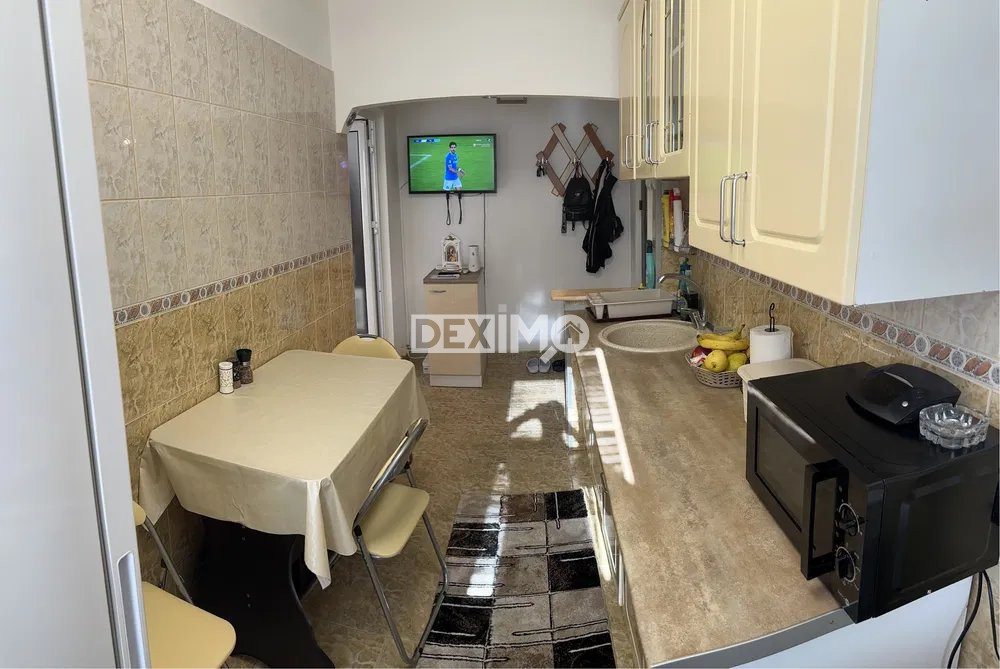 Deximo va prezinta spre vanzare un apartament in suprafata de 43 mp , de 2 camere semidecomandate, situat in Zona Tomis Nord, la ultimul etaj al unui bloc de 4 etaje, compartimentat astfel : living, hol, bucatarie, dormitor, grup sanitar, balcon. La interior, dispune de finisaje moderne, se vinde mobilat si utilat complet dupa cum se poate vedea in fotografii, conducta de gaze naturale este trasa la aragaz iar focul pentru centrala este pregatit.