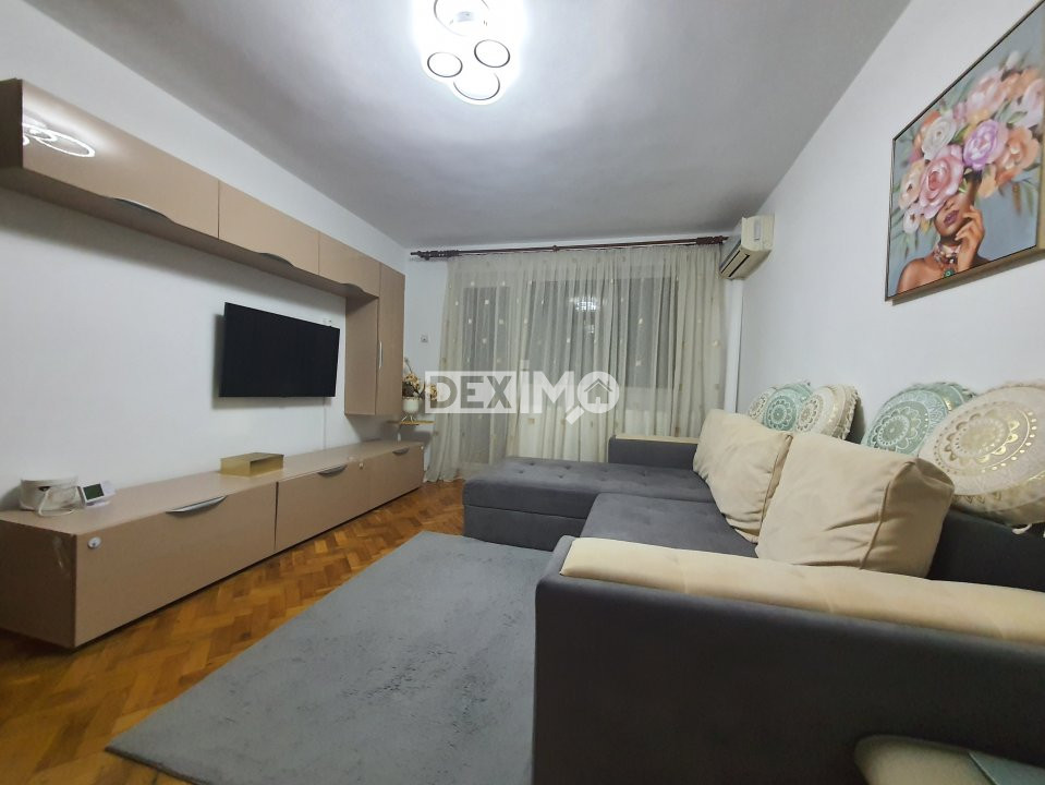 Deximo va prezinta spre vanzare un apartament modern cu doua camere in suprafata de 50 mp, situat intr o zona de interes, Zona Tomis Nord, la etajul 1 al unui bloc de 4 etaje, compartimentat astfel : living, 2 holuri, bucatarie, dormitor, grup sanitar si balcon. La interior, dispune de finisaje moderne, se vinde mobilat si utilat complet dupa cum se poate vedea in fotografii, dotat cu centrala pe gaze si aparat de aer conditionat.