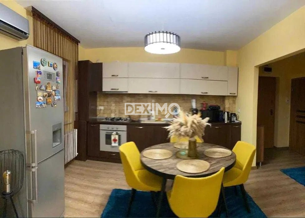 Deximo va prezinta spre vanzare un apartament modern si spatios in suprafata de 68 mp, 2 camere decomandate, situat in Zona Tomis Plus, parter inalt, bloc de 5 etaje, compartimentat astfel : living, hol, bucatarie open space, dormitor, grup sanitar, balcon generos. La interior dispune de finisaje moderne si se vinde mobilat si utilat complet dupa cum se poate vedea in fotografii, dotat cu centrala pe gaze. Exista posibilitatea achizitionarii unui loc de parcare la pretul de 5 000 Euro.