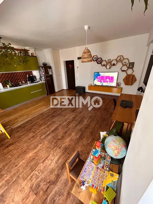 Deximo va prezinta spre vanzare un apartament modern in suprafata de 52 mp, de 2 camere, situat in Zona Tomis Plus, la etajul 2 al unui bloc de 5 etaje cu lift, compartimentat astfel : living, hol, bucatarie, dormitor, grup sanitar, balcon si boxa ideala pentru depozitare, situata la subsol. La interior, dispune de finisaje moderne, se vinde mobilat si utilat complet dupa cum se poate vedea in fotografii, dotat cu centrala pe gaze si aparat de aer conditionat.