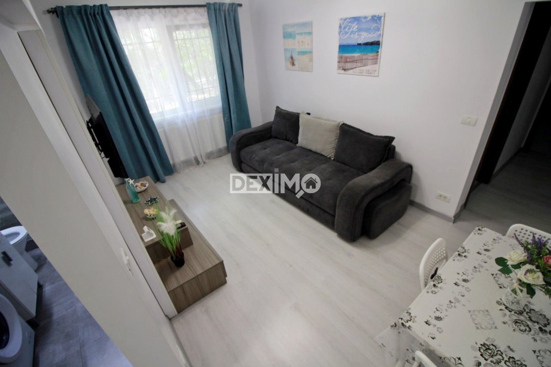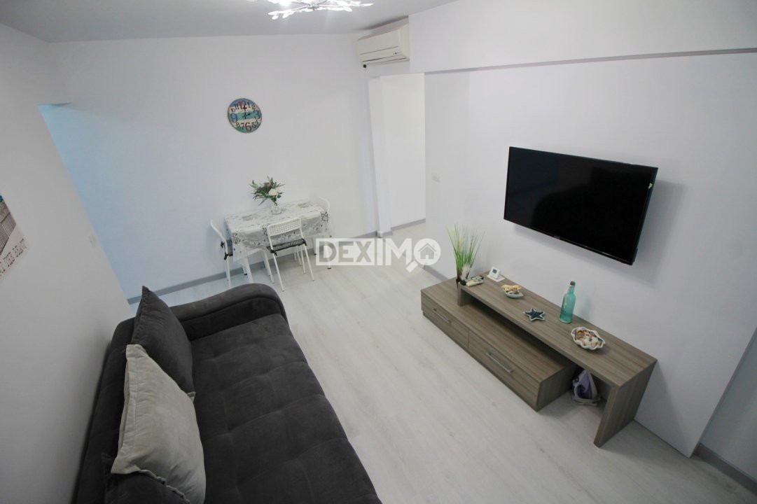 Deximo va prezinta spre inchiriere un apartament modern in suprafata de 52 mp , de 3 camere semidecomandate, situat in Zona Tomis Nord, la parterul unui bloc de 4 etaje, compartimentat astfel : living, hol, bucatarie, 2 dormitoare, grup sanitar. La interior, a fost renovat integral, dispune de finisaje moderne, se inchiriaza mobilat si utilat complet dupa cum se poate vedea in fotografii, dotat cu centrala pe gaze si aparat de aer conditionat.
