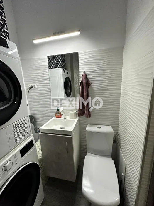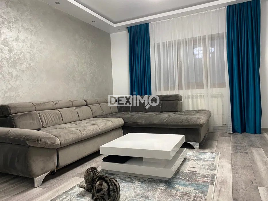 bucatarie, 2 dormitoare, 2 grupuri sanitare, balcon. Locuinta a fost renovata integral in urma cu 2 ani pana la placa de beton, instalatia sanitara si cea electrica au fost inlocuite, dispune de finisaje premium, se vinde mobilat dar fara mobila din dormitorul copilului si utilat complet ( tv-uri in fiecare camera, plita electrica, cuptor electric, cuptor cu microunde incorporat in insula bucatariei, hota, frigider, masina de spalat vase incorporabila, uscator haine, masina automata), dotat cu centrala pe gaze si unitati de racire in fiecare camera. Apartamentul beneficiaza de 2 boxe cu acces exclusiv situate la subsolul blocului, una avand o suprafata de 4 mp iar cealalata o suprafata de 20 mp.