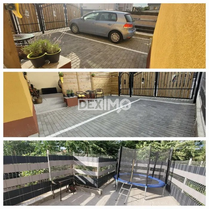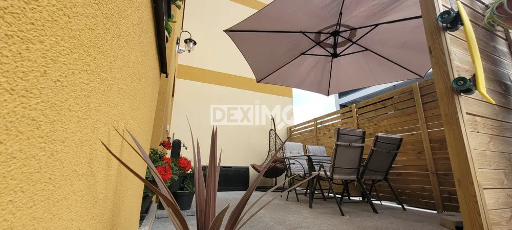 Deximo va prezinta spre vanzare un apartament modern si spatios in suprafata de 90 mp, de 3 camere decomandate, situat in Ovidiu, 3 minute de cartierul Tomis Plus, aproape de Soseaua Nationala, la parterul unui bloc de 2 etaje. Imobilul este compartimentat astfel : living, hol, bucatarie, 2 dormitoare, unul matrimonial, 2 grupuri sanitare, terasa de 18 mp si curte 70 mp amenajata cu loc de luat masa si loc de parcare auto.Toate camerele au o inaltime de 3 m la interior, dispune de finisaje moderne si se vinde mobilat complet si ultrautilat, doar va mutati ( masina de spalat, frigider, televizoare, uscator rufe, masina de spalat vase etc.) dupa cum se poate vedea in fotografii