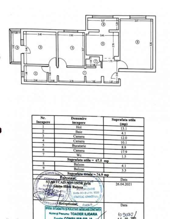 Deximo va prezinta spre vanzare un apartament modern si spatios in suprafata de 75 mp , de 3 camere decomandate, situat in Zona CET, la etajul 3 al unui bloc de 4 etaje, compartimentat astfel : living, hol, bucatarie, 2 dormitoare, 2 grupuri sanitare, 2 balcoane. La interior este recent renovat, dispune de finisaje moderne si se vinde mobilat si utilat complet dupa cum se poate vedea in fotografii, iar incalzirea se face prin termoficare RADET.