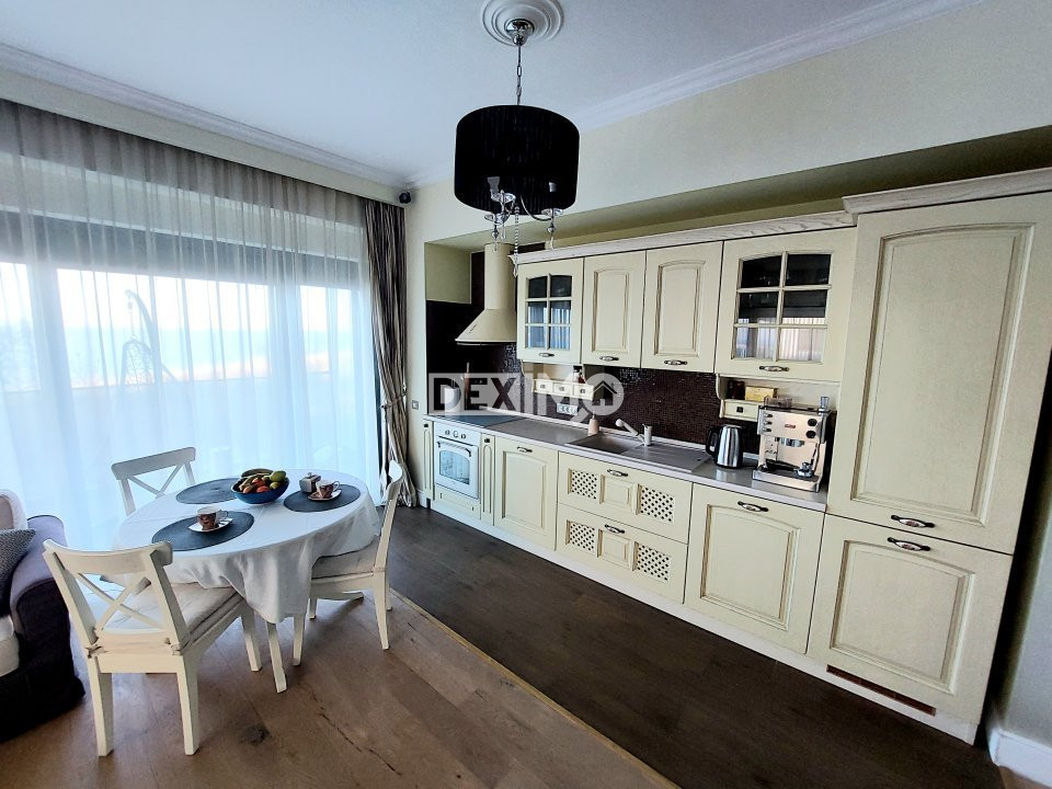 Deximo va prezinta spre vanzare un apartament modern si spatios in suprafata de 125 mp, de 3 camere decomandate, situat in Zona Faleza Nord, la parterul unui bloc de 11 etaje, compartimentat astfel : living cu bucatarie open space si dining, 2 dormitoare matrimoniale, fiecare cu grup sanitar si dressing si o terasa generoasa cu o priveliste superba catre mare. La interior, dispune de finisaje premium ( gresie si fainata din Spania, Italia, bai echipate cu obiecte sanitare Villeroy & Boch ) si se vinde mobilat si utilat complet dupa cum se poate vedea in fotografii. Locuinta se afla intr-un complex doatat cu sistem centralizat de climatizare si ventilare, centrala termica cu gaz amplasata la nivelul spatiului comunitar, securizare si monitorizare permanenta. De asemenea, complexul beneficiaza de o curte comuna, spatiu de joaca pentru copii, piscina interioara si sala fitness.