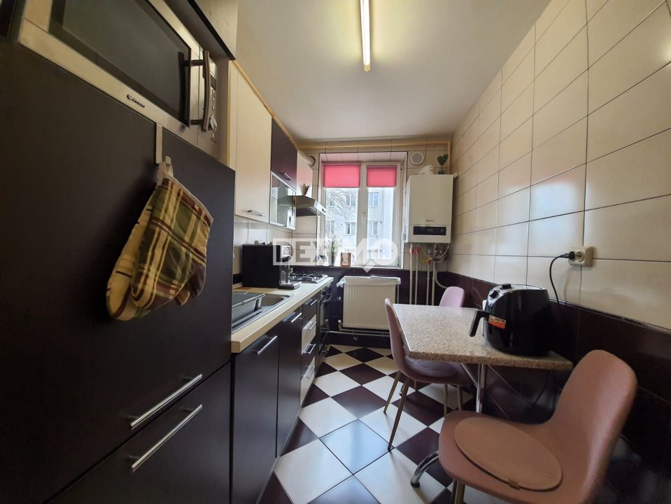 Deximo va prezinta spre vanzare un apartament spatios in suprafata de 60 mp , 3 camere, situat in Zona Far, la etajul 2 al unui bloc de 4 etaje, compartimentat astfel : living, 2 holuri, bucatarie, 2 dormitoare, grup sanitar, balcon inchis cu tamplarie PVC. La interior este recent renovat, dispune de finisaje de actualitate si se vinde mobilat si utilat complet dupa cum se poate vedea in fotografii, dotat cu centrala pe gaze Buderus si aparat de aer conditionat.