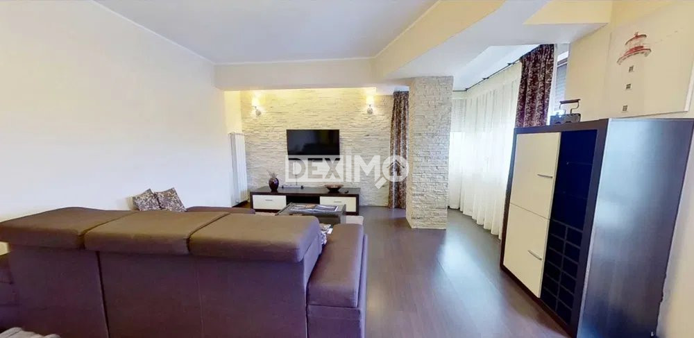 Deximo va prezinta spre vanzare un apartament modern si spatios in suprafata de 111 mp , de 3 camere decomandate, situat in Zona Compozitori, la ultimul etaj al unui bloc de 4 etaje cu Pod, compartimentat astfel : living, hol, bucatarie inchisa, 2 dormitoare din care unul matrimonial cu grup sanitar propriu si acces la terasa inchisa, un al doilea grup sanitar si 2 terase ( una inchisa si una deschisa). La interior, dispune de finisaje moderne si se vinde mobilat si utilat complet dupa cum se poate vedea in fotografii, dotat cu centrala pe gaze si aparat de aer conditionat. Locuinta are acces la podul imobilulul, pe care il poate folosi ca spatiu de depozitare si beneficiaza de un loc de parcare propriu.