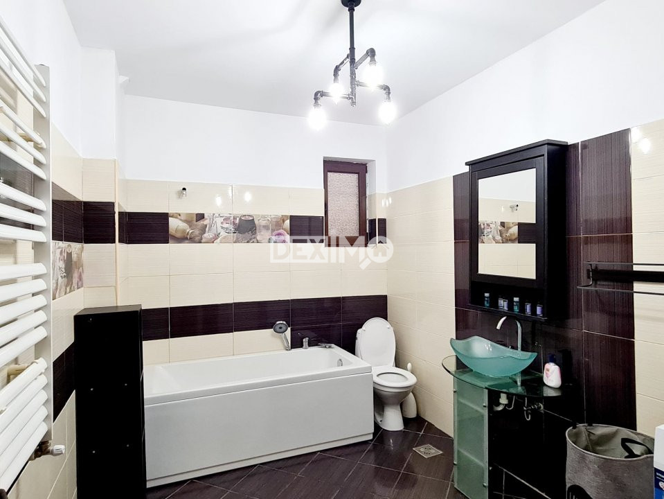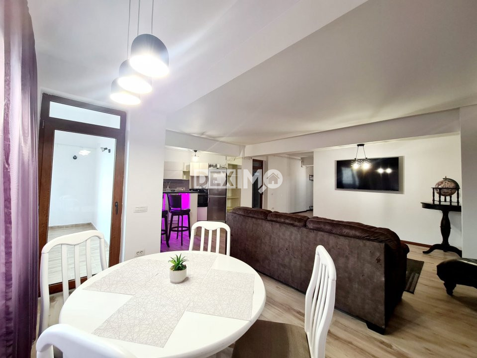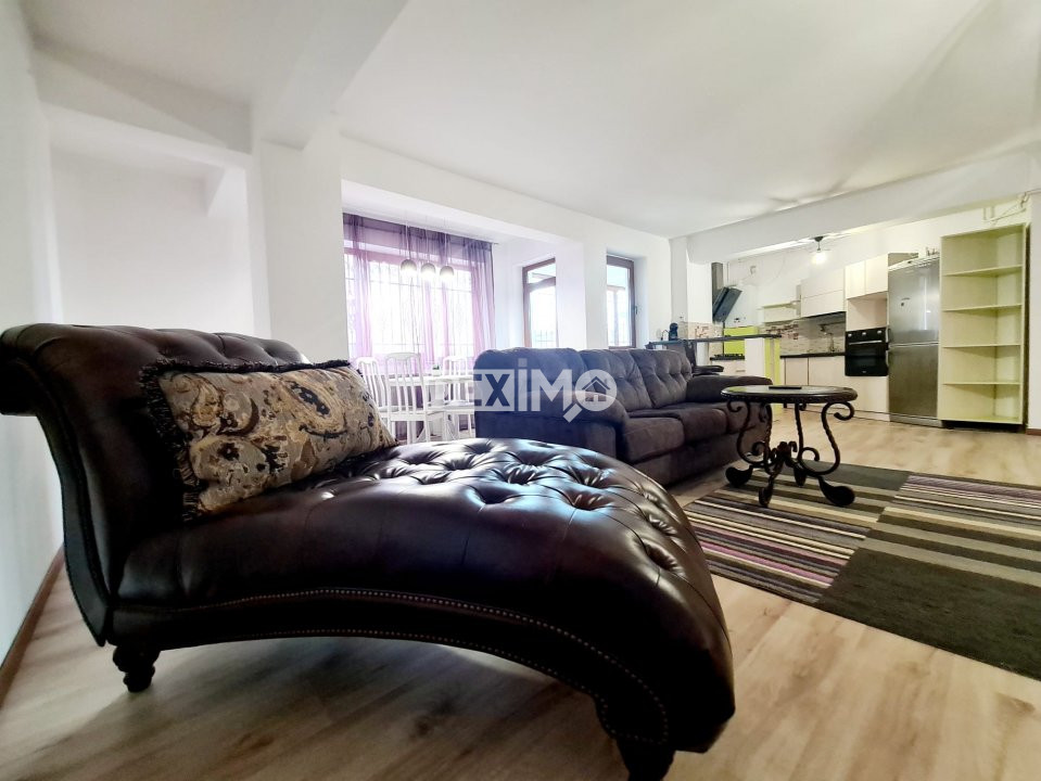 Deximo va prezinta spre vanzare un apartament modern si spatios in suprafata de 118 mp, de 3 camere decomandate, situat in Zona Compozitori, la parterul inalt al unui bloc de 4 etaje, compartimentat astfel : living, hol, bucatarie, 2 dormitoare, 2 grupuri sanitare, 2 balcoane. La interior, dispune de finisaje premium si se vinde mobilat si utilat complet dupa cum se poate vedea in fotografii, dotat cu centrala pe gaze si aparat de aer conditionat. Locuinta beneficiaza de o suprafata generoasa, fiind idealapentru o familie cu copii, acces catre curtea interioara din apartament.